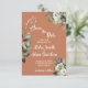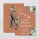 Tarjetas de save the date para tu gran día con flores de acuarela en tono rosa suave e ivory con hojas de salvia verde sobre un fondo de terracota. Personaliza estas tarjetas con tus nombres, la ubicación y la fecha de tu boda. Estas tarjetas de Save the Date son parte de una colección a juego