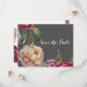 Tarjetas de 'Save the Date' florales grises y mora