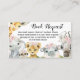 Tarjetas de solicitud de libros de safari de niña con adorables animales de safari bebé con hermosas flores rosadas sobre un fondo de puntos rosados. Estas tarjetas de solicitud de libros de safari de niña se personalizan fácilmente con su texto. También puede agregar un color de fondo en la parte frontal.