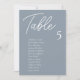 Las modernas tarjetas de mesa de Boda azul turquesa son el toque final perfecto para su recepción nupcial. Guíe a sus huéspedes para que se sientan con esta tabla de asientos única. Las tarjetas son perfectas para colgar o mostrar en una mesa o pared. El diseño presenta un tipo de letra de guión mínimo con un serif san elegante en blanco sobre un fondo azul. El diseño está impreso en ambos lados.