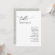 Diseñada para coordinarse con nuestra colección de bodas de guiones románticos, esta tarjeta de gráfico de asientos presenta un texto de guión de caligrafía barnizada combinado con un elegante tipo de letra sans serif y modernos en negro y con un sabio escarchado. El texto y el fondo se pueden cambiar a cualquier color para que coincida con el tema. Para realizar cambios avanzados, vaya a la opción "Hacer clic en el personalizar más adelante" en Personalizar esta plantilla.