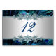 Cartas de mesa de pavo real con un hermoso fondo de plumas de pavo real azul y elegante área de plata y azul para el texto o números de su elección.