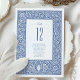 Añada un toque de elegancia eterna a su decoración boda con esta tarjeta numérica inspirada en William Morris. Esta tarjeta, decorada con intrincados motivos florales y de vid en azul y blanco clásico, ofrece un ambiente sofisticado y vintage a cualquier recepción. El borde, muy bien detallado, enmarca el número de la mesa, creando un punto focal impresionante para cada mesa. Perfecto para bodas vintage o tradicionales, esta tarjeta de número de mesa combina a la perfección el arte histórico con la funcionalidad moderna, lo que lo convierte en una adición memorable a su decoración boda.