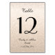 Tarjeta de tabla boda personalizada con texto de plantilla para un número, nombre y fecha; diseño retro de gradiente marrón champán con círculos de bokek;