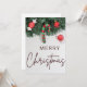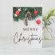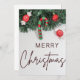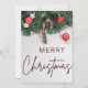 feliz navidad con árbol de navidad y adornos y bastón de caramelo. perfecto para invitaciones de temporada navideña.