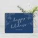 Mostrando su aprecio por aquellos que han hecho de este un año tan asombroso para su negocio con estas tarjetas de vacaciones Dark Blue Trendy Modern Photo Business. Cuenta con un elegante y sencillo tipo de letra de guión en la parte delantera, mientras que el interior de la tarjeta le da la oportunidad de escribir su propio mensaje y añadir su logotipo comercial.