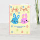 Tarjetas de vacaciones de conejitos lindos y huevo