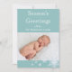 Delicados y detallados copos de nieve decoran esta bonita tarjeta de vacaciones con foto. Es perfecta para el primer día festivo del bebé, para mostrar su nuevo hogar o su foto de vacaciones favorita.