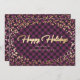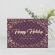 Elegantes tarjetas de vacaciones de negocios moradas y doradas con un falso título de caligrafía de oro y nieve sobre un fondo de manto de búfalo morado. Personalice fácilmente estas tarjetas de vacaciones de negocios moradas con el nombre de su empresa.