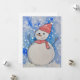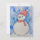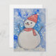 Tarjeta de felicitación con muñeco de nieve de acuarela y tinta. En la parte posterior dice "Es la temporada para estar congelado."