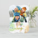 Tarjetas de deseos de vacaciones con plantilla de foto de piñas en oro y verde de PixDezines con color de fondo DIY. Fácil de personalizar, simplemente haga clic en el botón "personalízalo".com. Todos los derechos reservados.