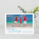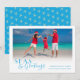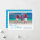 Envía cálidos deseos a familiares y amigos con esta tarjeta de vacaciones costera Mar y Saludos. Cuenta con "Mar y Saludos" en letra decorativa junto con tu foto favorita y mensaje personalizado. La parte trasera de la tarjeta presenta un patrón de estrellas de mar. ¡Felices Fiestas de Cherry Lane Designs!