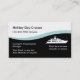 Tarjetas de visita de servicio de viajes de líneas de crucero con una elegante plantilla de diseño moderno que incluye una imagen de barco charter, plantilla de texto que puede personalizar y color de fondo negro que se puede personalizar en línea. Diseñado para una agencia de viajes, una agencia de viajes de crucero o un crucero de un día.