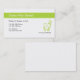 Aquí está una plantilla brillante y alegre de la tarjeta de visita de la oficina del dentista incluyendo un emblema brillante y alegre que destaque su nombre de compañía y símbolo verde a juego del diente. Organice la disposición del texto su manera y pedido para sí mismo y sus miembros del personal. Diseñado para un dentista, una clínica dental, o un cirujano dental.