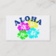 Aloha en el idioma hawaiano significa afecto, amor, paz, compasión y misericordia. Desde mediados del siglo XIX, también ha llegado a ser utilizado como un saludo inglés para decir adiós y hola. Actualmente, se utiliza principalmente en el sentido de hola. Esta tarjeta de visita contiene un colorido diseño de flores hawaianas en rosa, amarillo, verde y azul. Gráfico muy tropical con un efecto desgastado sobre él. ¡Mahalo!