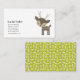 Diviértase cierto con estas tarjetas de visita ilustradas con un marrón, antlered, gráfico de los ciervos del dólar del estilo del dibujo animado (o quizás su un reno). El ilustracion animal del arbolado adorable le hace una tarjeta perfecta para los autores de los niños, los educadores de la niñez temprana, los dueños de la guardería, los especialistas de la fauna o cualquier persona que quiera una tarjeta de visita de fines generales amistosa. Utilice los campos terraplén-en--en blanco para modificar fácilmente estas tarjetas para requisitos particulares con su nombre y para entrar en contacto con el Info en el frente. La parte posterior tiene una impresión geométrica del modelo de la verde lima.