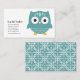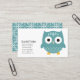 Diviértase cierto con estas tarjetas de visita ilustradas con un azul, grande-observado, gráfico del búho del estilo del dibujo animado. El ilustracion animal del arbolado adorable le hace una tarjeta perfecta para los autores de los niños, los educadores de la niñez temprana, los dueños de la guardería, los especialistas de la fauna o cualquier persona que quiera una tarjeta de visita de fines generales amistosa. Utilice los campos terraplén-en--en blanco para modificar fácilmente estas tarjetas para requisitos particulares con su nombre y para entrar en contacto con el Info en el frente. La parte posterior tiene impresión geométrica azul a juego del modelo.
