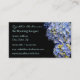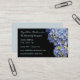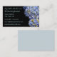 Tarjetas de visita de hortensias azules. Texto de plantilla azul claro sobre negro con fotografía hidrangea a lo largo del borde. Revertir es azul claro. Tarjeta adecuada para cualquier mujer de negocios.