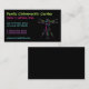 Estas tarjetas de visita de la quiropráctica ofrecen el texto colorido y el logotipo caprichoso del hombre de Vitruvian del DaVinci-estilo, todo en un fondo negro. El dorso de la tarjeta es también negro, que puede ser cambiada haciendo clic en "personalizar él."
