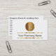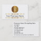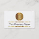 Tarjetas de visita exclusivas de la farmacia que usted puede modificar para requisitos particulares con el diseño bilateral simple y potente que incluye un mortero y una maja simulados del oro junto con la línea impresa acentos del oro, y la gran disposición del texto. Diseñado para una farmacia, un farmacéutico, o un negocio de la industria médica.