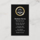 Tarjetas de visita con clase del abogado con la portada simple única que incluye un emblema de mirada metálico de la escala de la ley, emblema profesional fresco, junto con su información de contacto y servicio Info en este diseño elegante que incluya la impresión bilateral. Diseñado específicamente para un abogado, una abogacía, o un asesor legal.