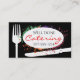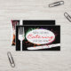 Cubiertos o utensilios de la consumición con la caja de texto del chapoteo del color en esta tarjeta de visita para el cocinero personal, el abastecedor o la compañía de abastecimiento, las clases de cocina, los viajes del restaurante o la otra comida, cocinar, o negocio culinario.
