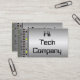 Cromo liso de la superficie metalizado de la mirada del acero inoxidable en el centro para su nombre o el nombre de compañía. El fondo es una plata de alta tecnología, futurista con los pixeles verdes claros o luces LED. Una tarjeta de visita moderna intrépida, única. Fácilmente personalizar con su propia información. La tarjeta de mirada profesional perfecta especialmente para los campos técnicos, el ordenador, el juego, la reparación de la tecnología, y los negocios relacionados electrónicos. Más información se puede poner en la parte posterior también sobre el mismo fondo metalizado. Una tarjeta de visita fuerte que se destaca del resto.