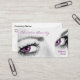 Las tarjetas de visita de los artistas de maquillaje con una hermosa mujer en el fondo y llamativos ojos de color, junto con un sencillo diseño de texto que se puede personalizar. Perfecto para cualquier tipo de tarjeta de visita relacionada con la belleza, el cosmetólogo, los cosméticos o el salón de belleza o de belleza.