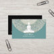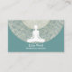 Elegante atención tarjetas de negocios con florido acento gráfico y símbolo de una persona haciendo meditación y diseño de texto que se puede personalizar en este diseño de dos lados. Tarjeta de visita perfecta para temas relacionados con la atención, la aptitud física y la meditación.