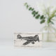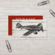 Un aeroplano vintage fresco sobre un fondo de madera blanca, con espalda roja y texto blanco.