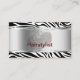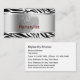 Modernas tarjetas de negocios de peluquería de belleza con fondo metálico plateado simulado, un patrón de rayas de cebra y una gran disposición de texto que se puede personalizar en dos lados. Fácil diseño de estilo de plantilla que puede cambiar a su gusto. Las mejores tarjetas de visita para salones de belleza, peluqueros, peluqueros o peluqueros independientes.