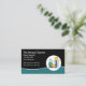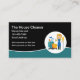 Esta plantilla de diseño de tarjeta de visita de servicio de limpieza editable única se crea con un carácter profesional de limpieza que contiene un trapeador e incluye plantillas de texto que puede editar y personalizar con su propia información sobre la empleada doméstica o la empleada doméstica.