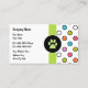 Tarjetas de visita de cuidado de mascotas diseñadas en un colorido gráfico de impresión de pata y patrón de puntos de polka junto con un diseño de texto personalizado editable que se puede personalizar en línea. Perfecto para cualquier tema relacionado con tarjetas de visita relacionado con perros, gatos, mascotas, salud de mascotas o veterinarios, aunque algunos están usando esto como perrera mascota y tarjeta de visita de mascota.