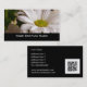 Crisantemos frescos hermosos que estallan en la floración en cierre para arriba. Tarjetas de visita de encargo de la fotografía floral. Añada su propio texto y el código de QR (o suprima si no necesitado). Modifique para requisitos particulares para más opciones (colores de las fuentes, posiciones, el texto adicional)