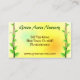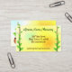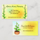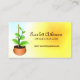 © Sunny Mars Designs. Crecer Vine en tarjetas de visita de enfermería de palo de bambú - Esta plantilla de tarjeta de visita de vivero presenta una vid cultivada contra un bastón de bambú marrón sobre un fondo amarillo. La parte posterior de la tarjeta presenta la misma planta creciendo sobre un palo de bambú en una olla de terracota.