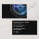 Tarjeta de trabajo fotográfica con imagen de lente de cámara en un diseño inteligente de dos caras con área de texto que se puede personalizar. Utilice esta plantilla de tarjeta de visita para fotografía para fotógrafos, camarógrafos o estudios de fotografía. Si su servicio profesional incluye fotografía de retratos, fotografía de bodas o una escuela de fotografía, este diseño funcionará bien para usted.