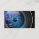 Tarjeta de presentación fotográfica con imagen artística de una lente de cámara.Utilice esta plantilla de tarjeta de visita para fotógrafos, camarógrafos, planificadores de eventos o estudio fotográfico. O puede ser más adecuado para tu fotografía de retrato, fotografía de boda o escuela de fotografía.