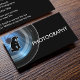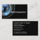 Tarjeta de trabajo fotográfica con imagen de lente de cámara y símbolo de fotografía en un diseño inteligente de dos lados con área de texto que puedes personalizar. Utilice esta plantilla de tarjeta de visita para un fotógrafo, un camarógrafo o un estudio de fotografía. Si su servicio profesional incluye fotografía de retratos, fotografía de bodas o una escuela de fotografía, este diseño funcionará bien para usted.