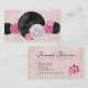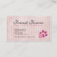 Haz el favor de tu mascota sentado, salón de belleza, servicio de entrenamiento para mascotas u otra profesión relacionada con animales con estas tarjetas de visita rosadas y negras de Kustom By kris. La parte delantera incluye un dibujo de una línea de un gato y un perro, huellas de pata, rayas, floridos y puntos de polka. Personalice la parte posterior con su nombre comercial e información de contacto, o omita el texto y agregue su propio logotipo.