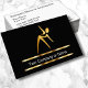 Tarjetas de visita de la aptitud que usted puede modificar para requisitos particulares con el diseño con clase que incluye un símbolo coloreado oro del entrenamiento, una línea impresa acentos del oro, y una gran disposición del texto presentada en la esquina redondeada de papel de tarjetas. Piense en esto como tarjeta de visita para los temas relacionados con el ejercicio, el gimnasio del entrenamiento, el instructor, las clases y la aptitud.