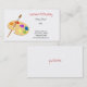 Tarjetas de visita convenientes para cualquier artista o profesor de arte. Esta tarjeta ofrece un fondo blanco con un dibujo de una plataforma y de una brocha de la pintura en el lado izquierdo. Todo el texto es adaptable en el frente y la parte posterior y usted pueden añadir más si es necesario.