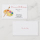 Tarjetas de visita convenientes para cualquier artista o profesor de arte. Esta tarjeta ofrece un fondo blanco con un dibujo de una plataforma y de una brocha de la pintura en el lado izquierdo. Todo el texto es adaptable en el frente y la parte posterior y usted pueden añadir más si es necesario.