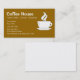 Plantilla de las tarjetas de visita de la cafetería con el diseño elegante que incluye imagen de una taza de café fresca, disposición del texto que usted puede personalizar incluyendo el cambio del color o del estilo de texto. Modifique el color de fondo para requisitos particulares diseñado para una cafetería, un servicio, o un restaurante del desayuno.