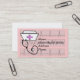 Tarjetas de visita de la enfermera registradoa, casquillo de la enfermera y diseño del estetoscopio en fondo cardiaco de las tiras del ritmo. Perfeccione para que las asistencias sanitarias a domicilio o las enfermeras que visitan salgan de los hogares el hospitalizado. El frente y la parte posterior de la tarjeta es adaptables incluyendo color de fondo.