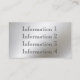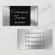 Una frontera metálica del marco en cromo de plata liso de la mirada del acero inoxidable en el frente de la tarjeta con un fondo negro dinámico da una tarjeta de visita de profesional-mirada de la mirada intrépida, única 3d. Fácilmente personalizar con su propia información. Utilice la fuente elegante de los gris plateados a juego mostrada o cambie fácilmente el estilo de fuente y coloréelo. También, usted puede cambiar fácilmente el fondo negro del color a cualquier color. Apenas haga clic en el "personalizar él". Una tarjeta de mirada única, especialmente grande para los comercios industriales, expertos en empleos de la construcción y de la construcción. Más información se puede poner en la parte posterior también en el fondo metalizado liso. Una tarjeta de visita fuerte que se destaca del resto. Metal realista impreso, no real.