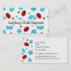 Plantilla de la tarjeta de visita de la guardería en diseño brillante y de la diversión incluyendo mariquitas, flores, y flores lindas del hibisco en turquesa, rojo, y wbite. Destaca su nombre de compañía en el frente y exhibe sus detalles de la guardería en la parte negativa. Diseñado como un diseño de la guardería o el cuid losar nin¢os.