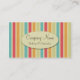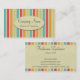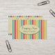 ¡Estas tarjetas de visita coloridas fueron hechas con una panadería o un chef de repostería en mente! Ofrecieron un fondo texturizado de las rayas del rosa, de la crema, del azul, anaranjadas y verdes. Un círculo poner crema contiene el sitio para su nombre de compañía y un tagline (o su Web site). La parte posterior contiene el sitio para sus detalles del nombre, del cargo y del contacto.