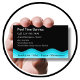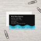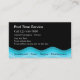 Tarjetas de visita de servicio de piscina con diseño moderno que incluye una línea ondulada azul que representa el agua, el estilo y la disposición del texto que se puede personalizar a ambos lados, y un diseño que es útil para el mantenimiento, instalación, reparaciones o spas de la piscina.