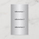 Las lentejuelas chispeantes dinámicas que miran textura del fondo en blanco dan una mirada intrépida, única 3d y una tarjeta de visita de profesional-mirada. Fácilmente personalizar con su propia información. Utilice la fuente intrépida negra mostrada o cambie fácilmente el estilo de fuente y coloréelo. Una tarjeta de mirada única, especialmente grande para los comercios en los empleos de la construcción y de la construcción, automotrices industriales, expertos, o la música, DJ, el negocio del entretenimiento, el etc. Más información se puede poner en la parte posterior también en el fondo de mirada metálico de la plata lisa del cepillo. Un fuerte, diversión, tarjeta de visita de mirada atractiva que se destaca del resto. Se muestra la versión vertical de la tarjeta horizontal popular considerada en MetalShop aquí en Zazzle.