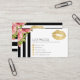 ¡Dé a su negocio un sello único de la aprobación con estas tarjetas de visita rayadas blancos y negros florales de moda! Ofreciendo labios frustrados del oro y una disposición simple hermosa con una parte trasera de coordinación única diseñe. Modifiqúela para requisitos particulares con su propia fraseología y negocio Info.
